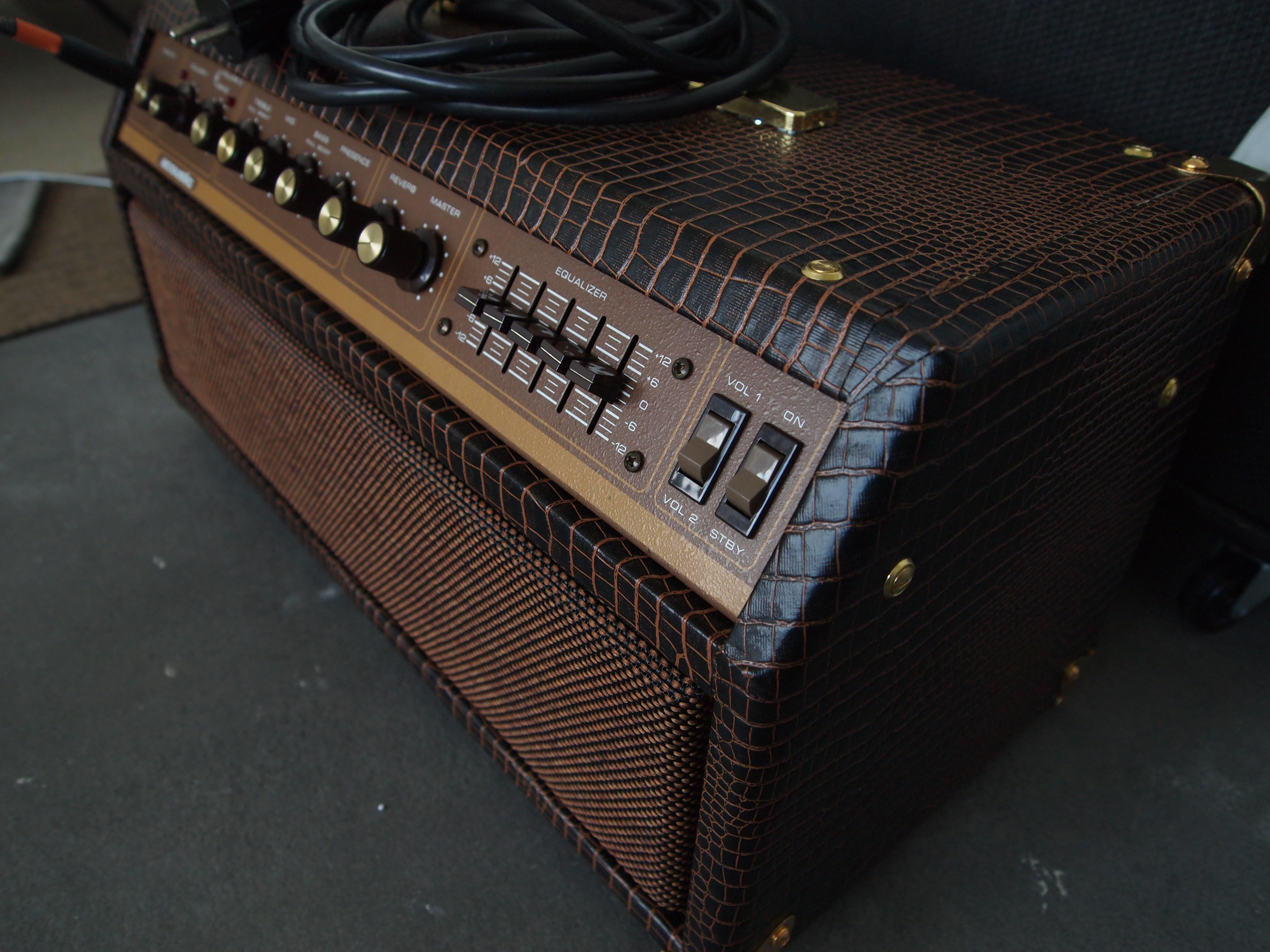 Restaurierung oder besser: kompletter Neuaufbau eines Fender Twin Reverb 135 Super Linear. Der Amp wurde zu einer Art Marshall umgebaut. Dazu wurde offensichtlich das Combo-Gehäuse so zertrennt, dass ein Top übrig blieb, mit roher Spanplatte als Bodenplatte. Gut, kann man machen. Da er eh' nicht ansprang, wurde er vollständig rekonstruiert und konzeptionell in seinen ursprünglichen Zustand zurückgeführt, einschl. eines vollständig neuen Gehäuses.