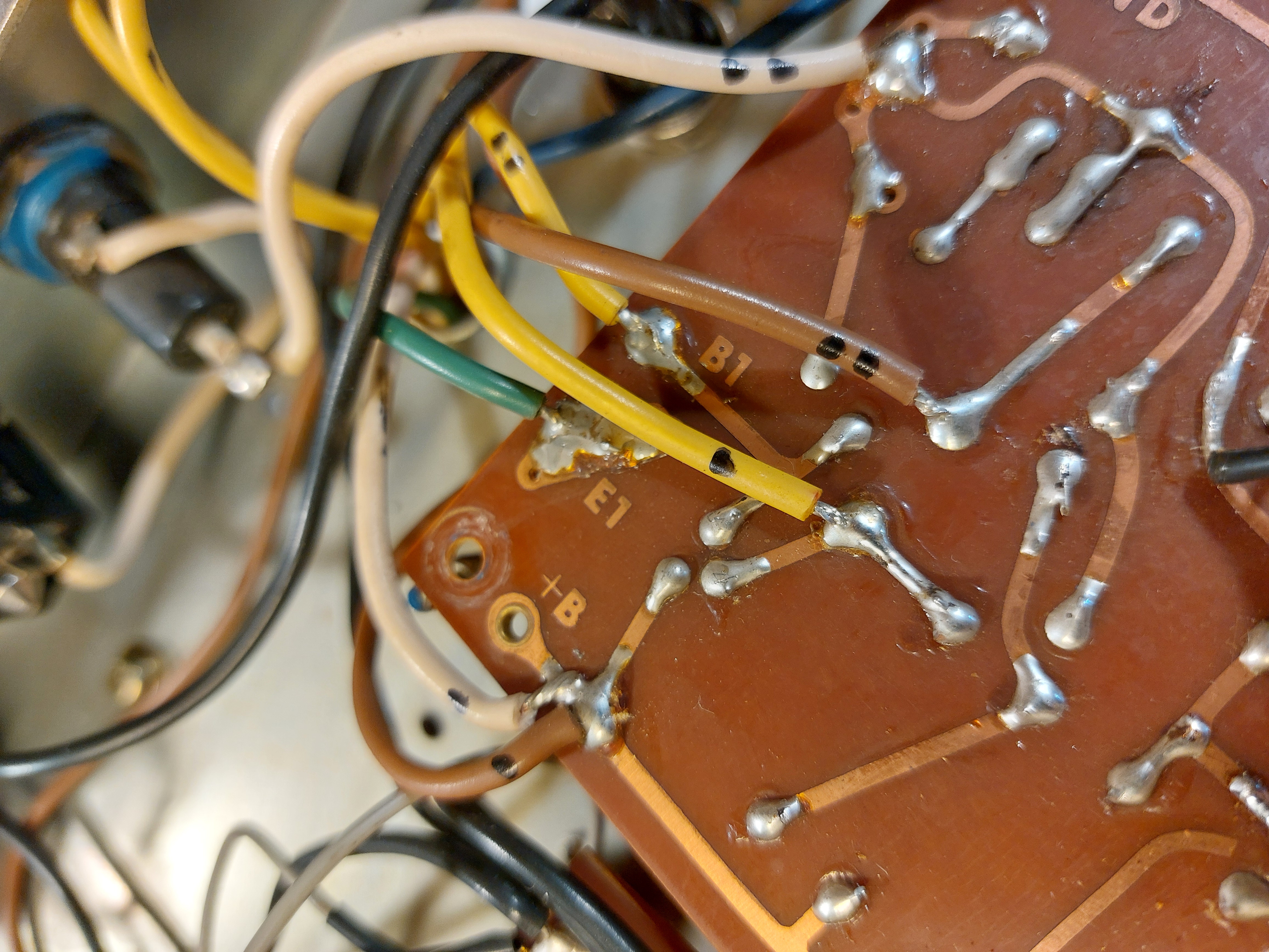 Ein transistorisierter Fender Bassman Clone von Pearl - ich kannte das Ding vorher nicht. "Egal, bring her, wir gucken". Rauschen und Knistern am Ausgang, wurde als Symptom beschrieben.