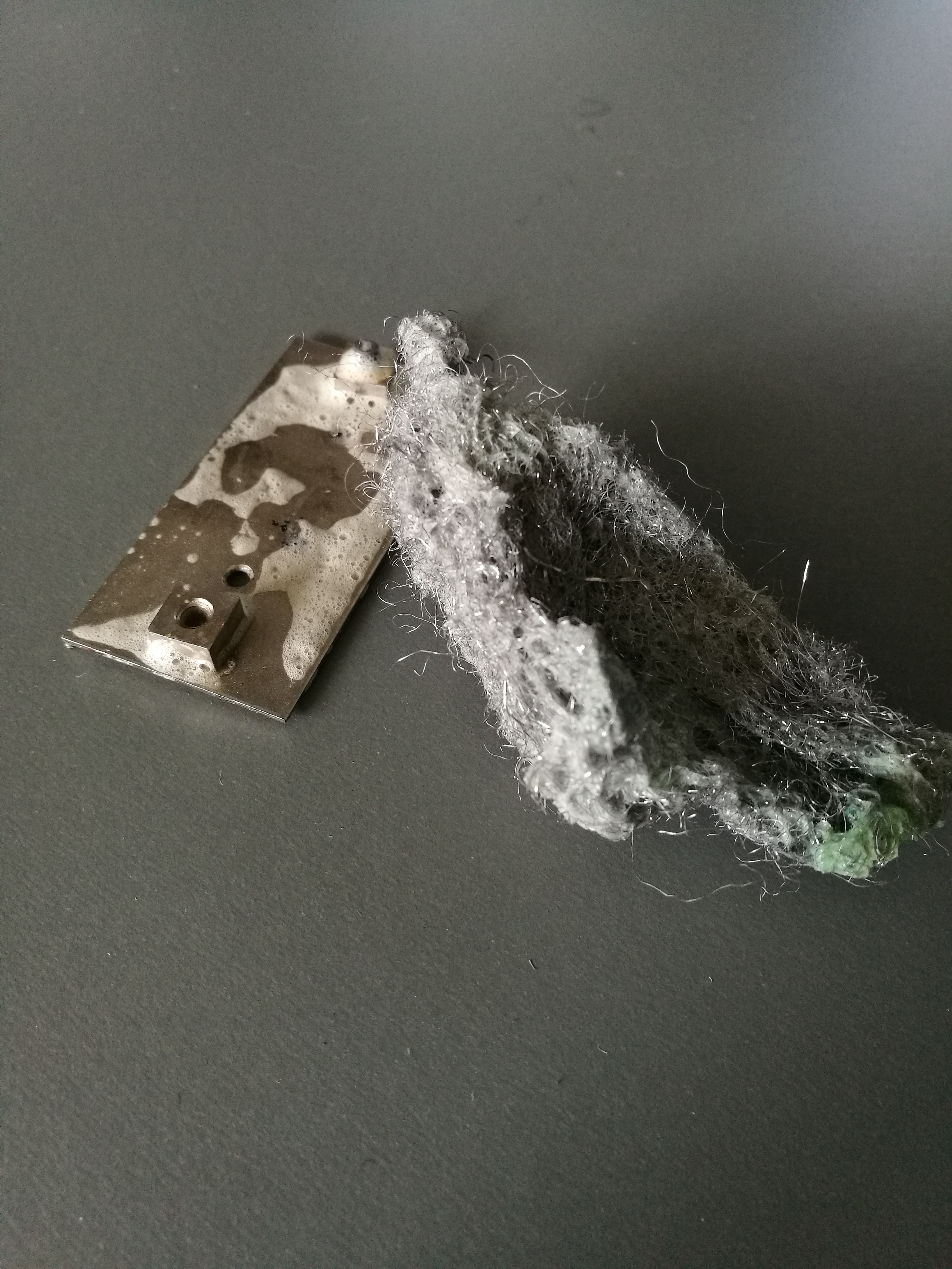 Knister, Krumpel, Kreisch. Unser Schlagzeuger (!!) hatte Probleme mit seinem Marshall Clone. Ursache waren mechanische Defekte in der Selbstbaukonstruktion, auf irgend 'nem Flohmarkt erworben.