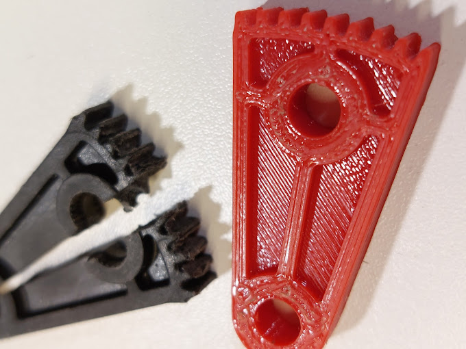 Häufig sind mechanische Ersatzteile schwer oder gar nicht mehr verfügbar. Wir konstruieren diese dann nach Möglichkeit digital nach (3D- Modellierung) und lassen die Teile bei einem 3D- Drucker unseres Vertrauens nachfertigen. Das klappt in der Regel recht gut, wie bei den beiden hier gezeigten Beispielen.