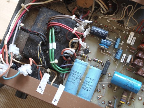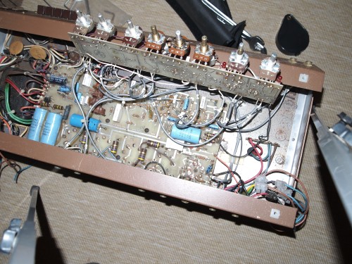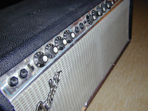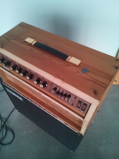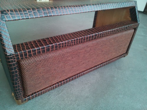Restaurierung oder besser: kompletter Neuaufbau eines Fender Twin Reverb 135 Super Linear. Der Amp wurde zu einer Art Marshall umgebaut. Dazu wurde offensichtlich das Combo-Gehäuse so zertrennt, dass ein Top übrig blieb, mit roher Spanplatte als Bodenplatte. Gut, kann man machen. Da er eh' nicht ansprang, wurde er vollständig rekonstruiert und konzeptionell in seinen ursprünglichen Zustand zurückgeführt, einschl. eines vollständig neuen Gehäuses.