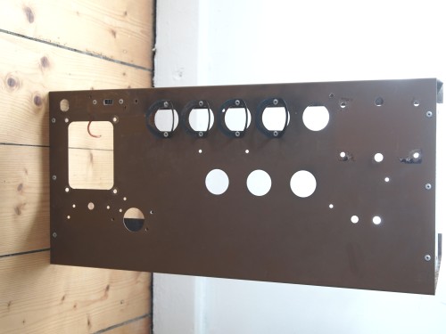 Online erworbenes Chassis ohne Gehäuse, ohne Speaker, musste vollständig überholt, teilweise entrostet werden und bekam ein neues Gehäuse als Topteil angepasst, des Gewichtes wegen.