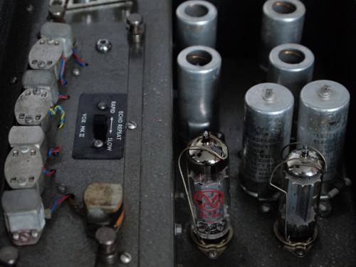 Das Vox Echo wollte nicht mehr, genauer: Vox Long Tom Echo Deluxe. Wow, was für ein royaler Name, Baujahr irgendwo in den 60ern. Ein tolles und seltenes Gerät, etwas verbaut durch Hände, die nicht so richtig wollten, wie sie hätten sollen.